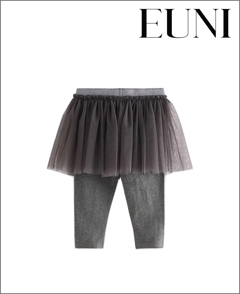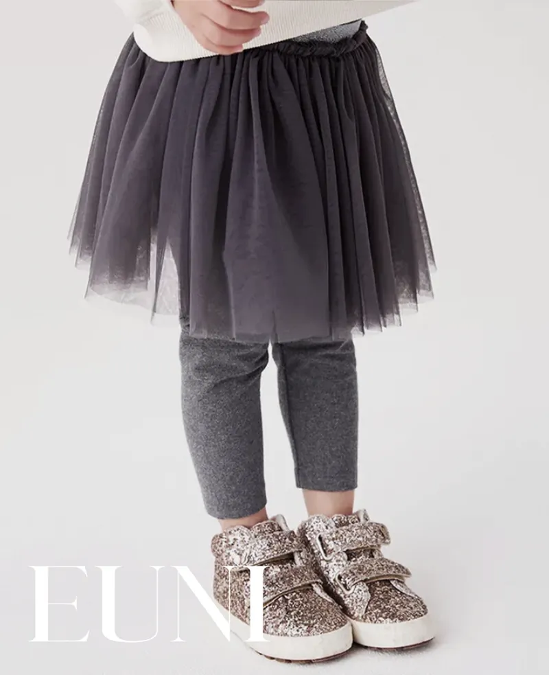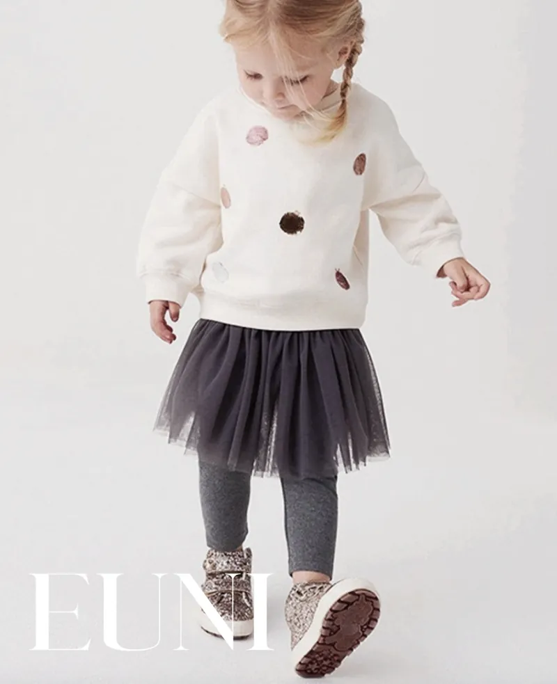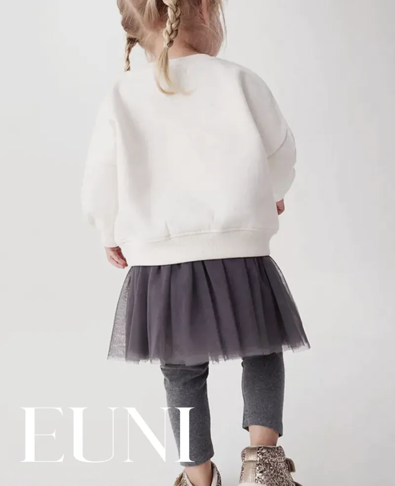 女童長袖、紡紗裙兩件套裝;裙襬網紗設計;純棉材質;可愛典雅風格。