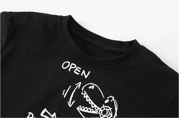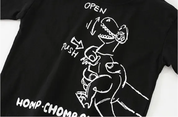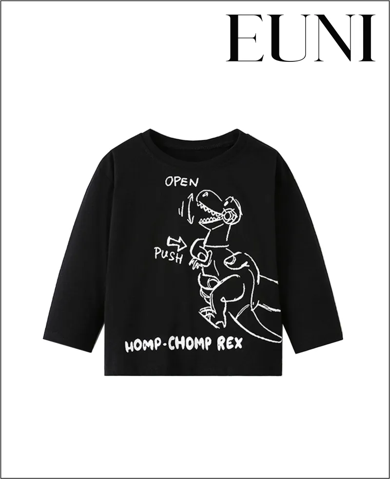 秋季最新T恤;童趣小空龍印花;純棉材質;排釦設計;帥氣又有型。