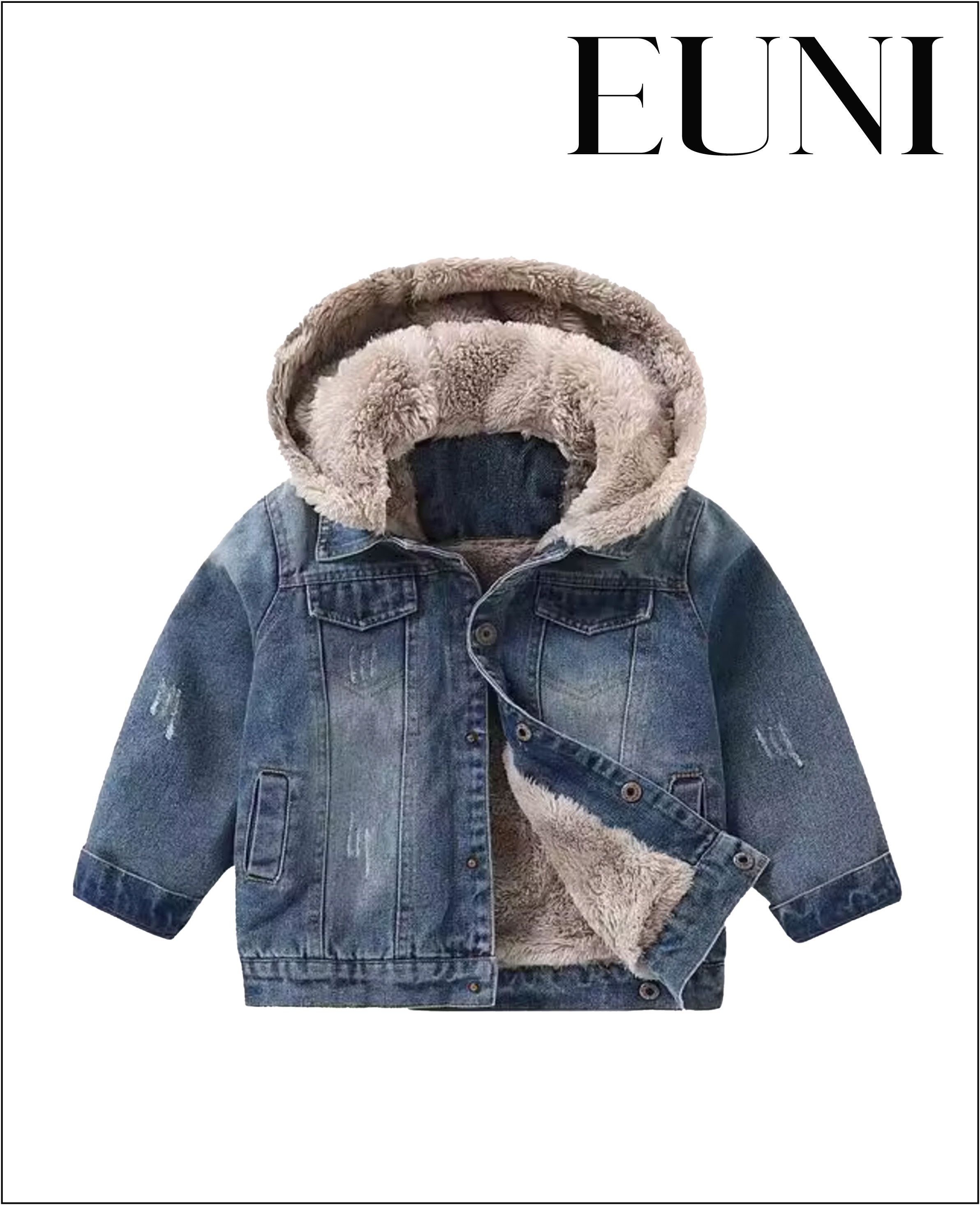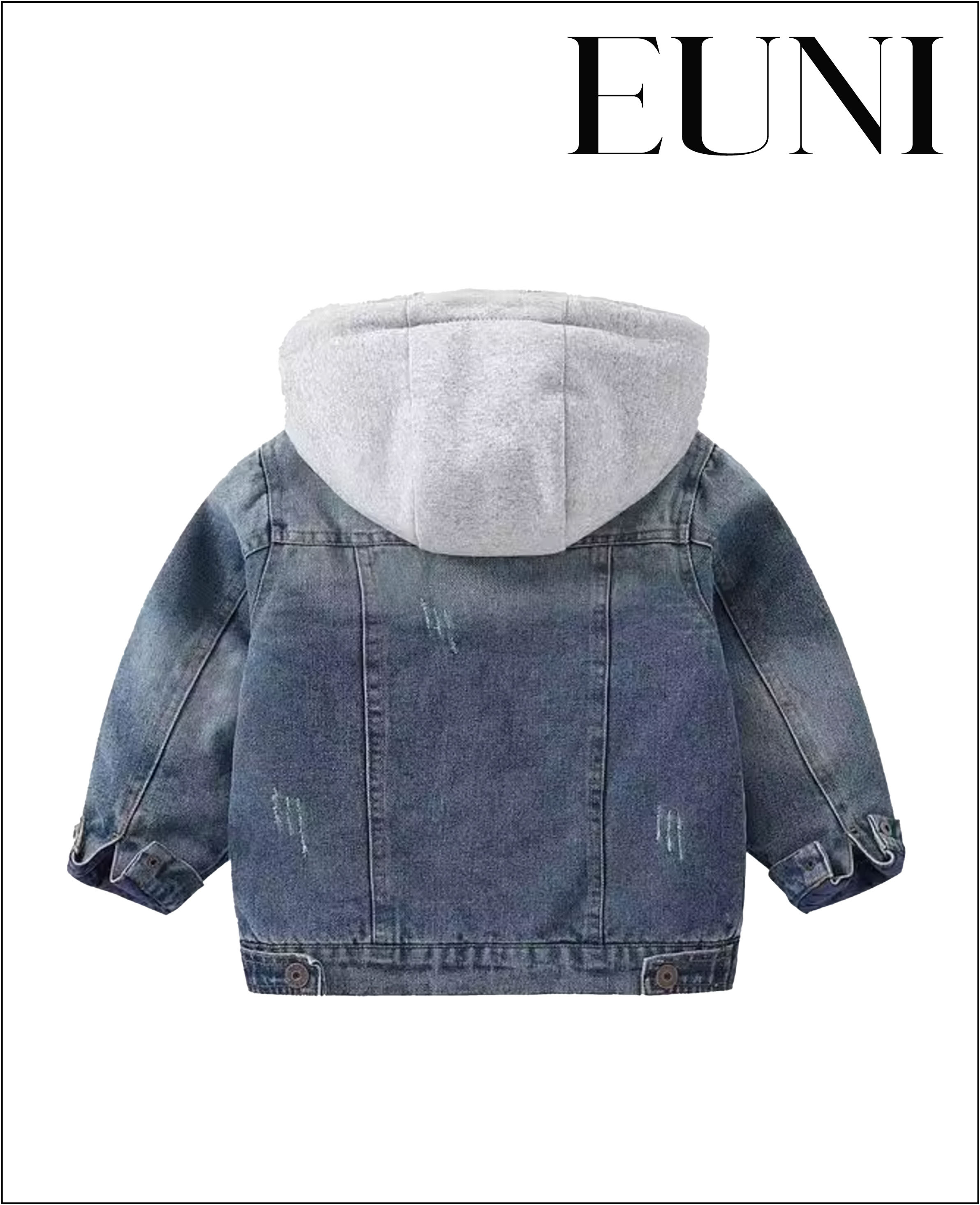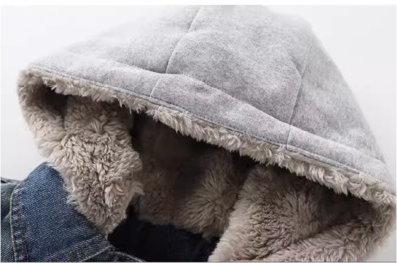 寶寶牛仔外套加厚款;牛仔連帽設計;歐美街頭風格帥氣有型。