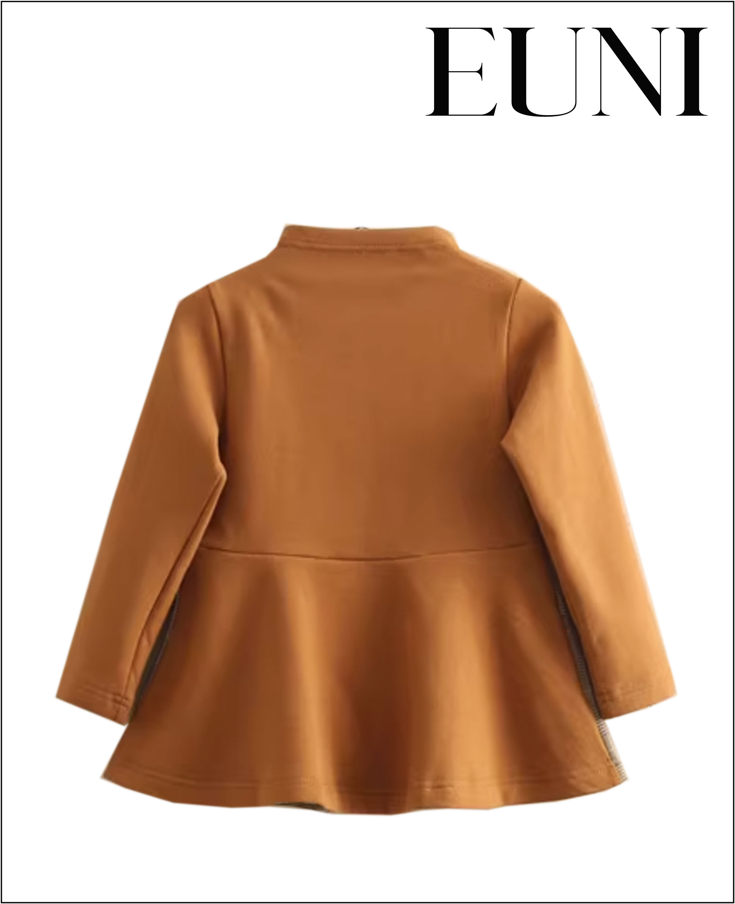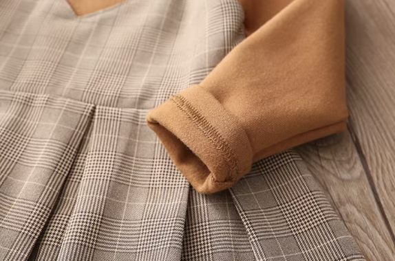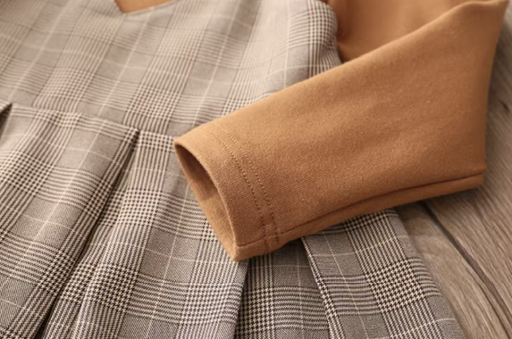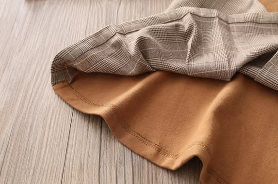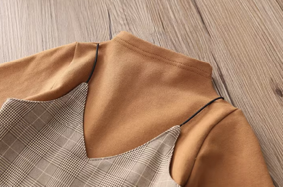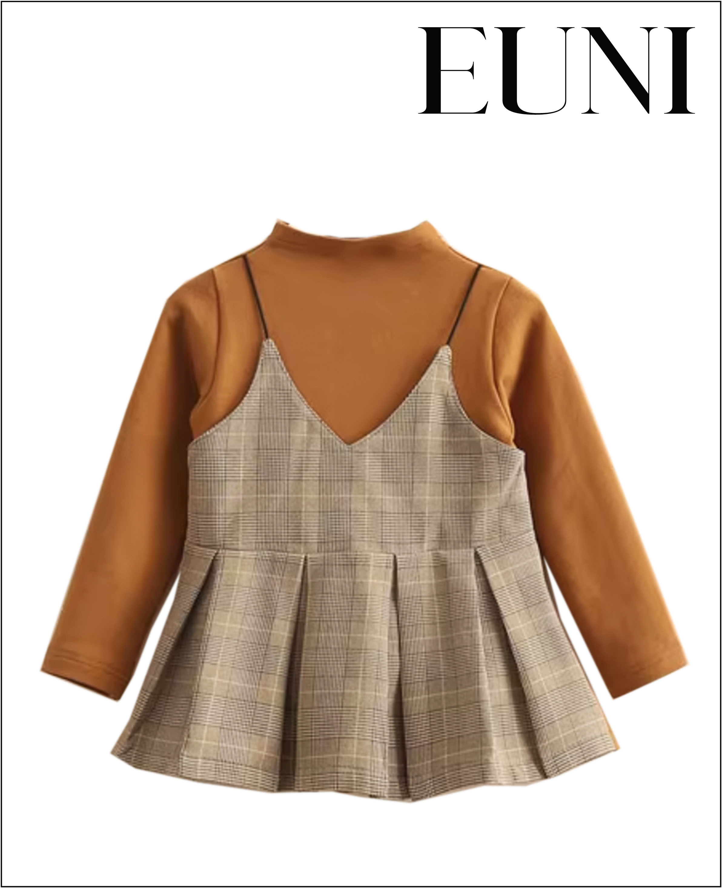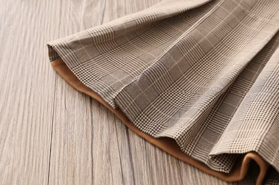 女童裙衫;蘇格蘭紋設計;聚酯纤维材質;兩件式層次設計;端莊典雅淑女風格。