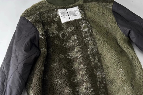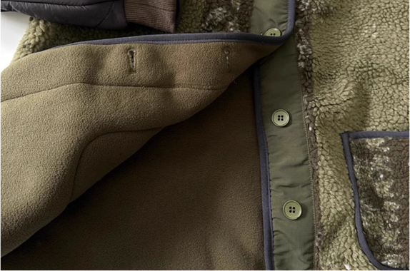 冬季厚迷彩棉外套;羊羔绒、純棉材質;雙色拼接袖;實穿帥氣又有型。