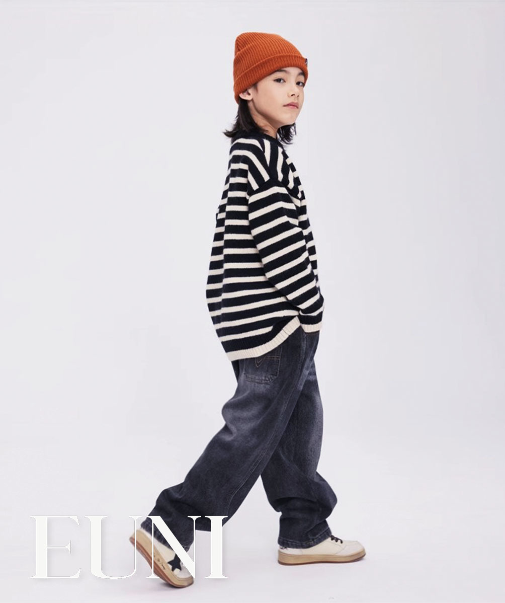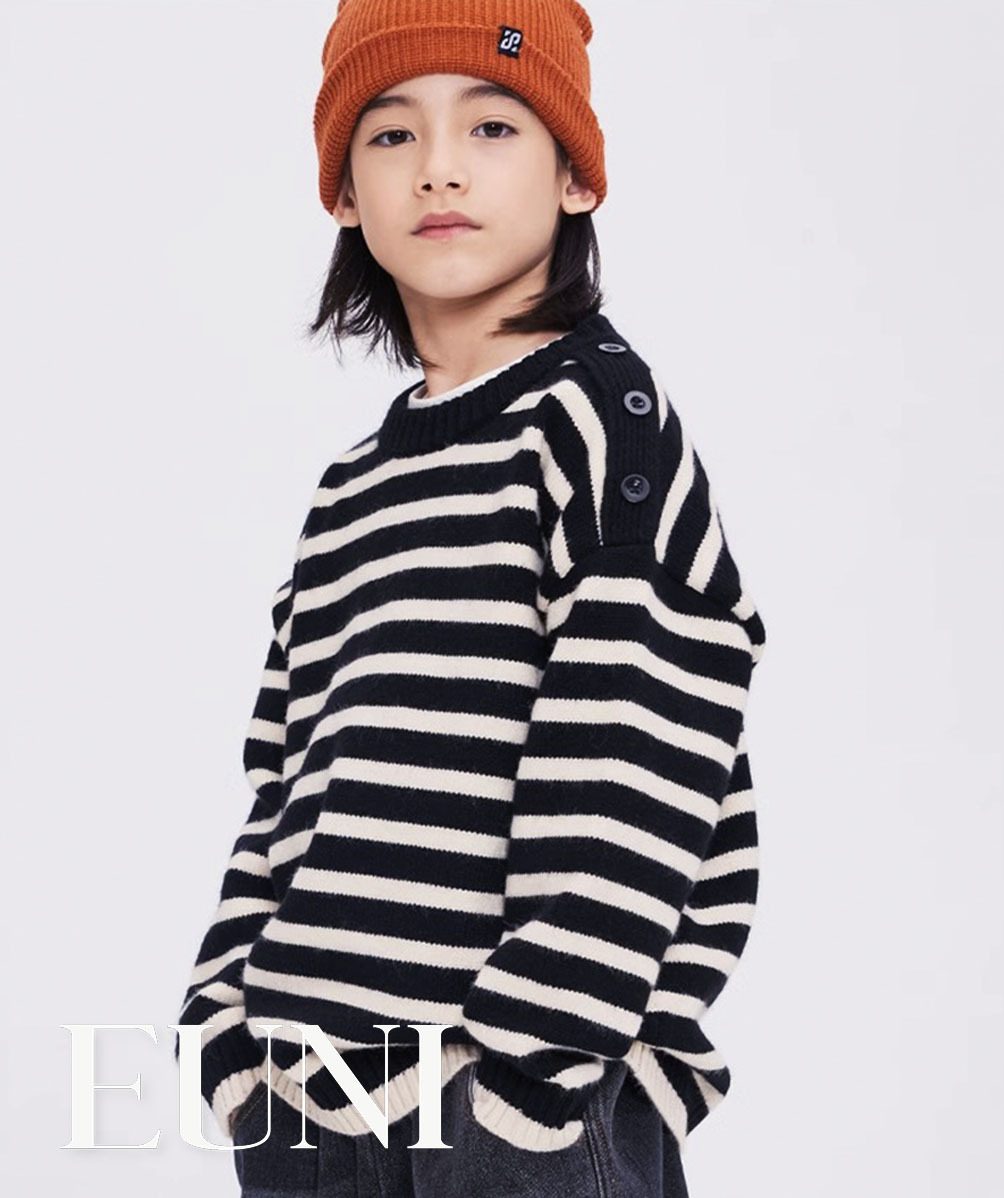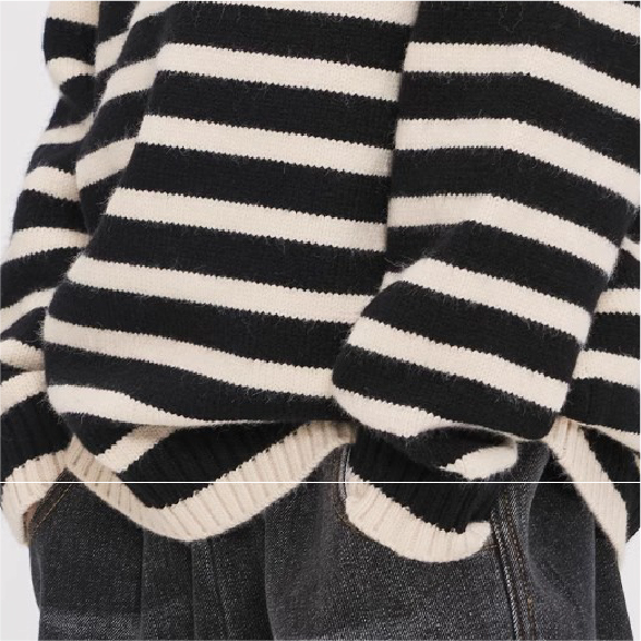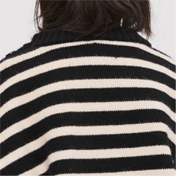 黑白條紋毛衣;落肩寬鬆設計;氣質穿搭首選。