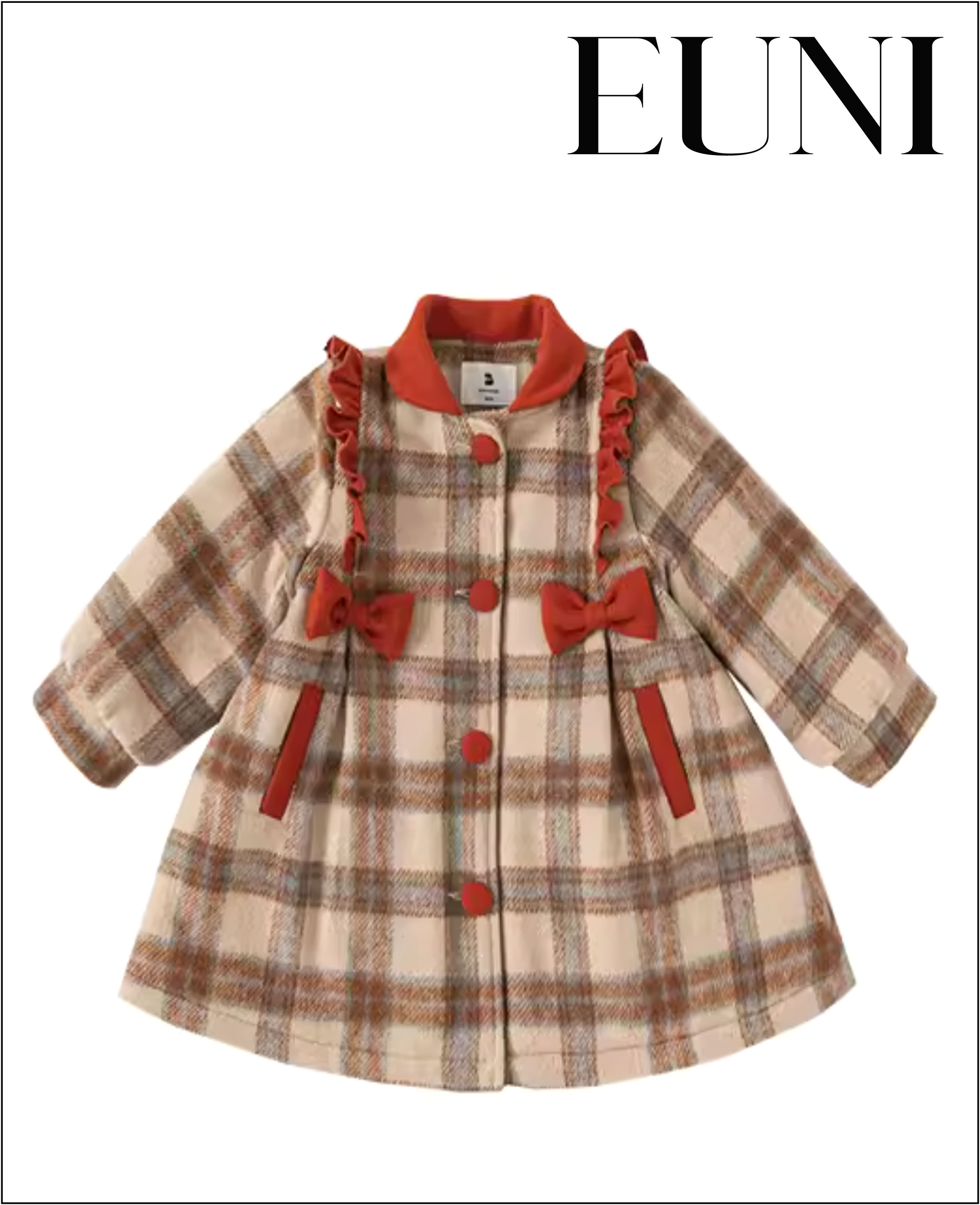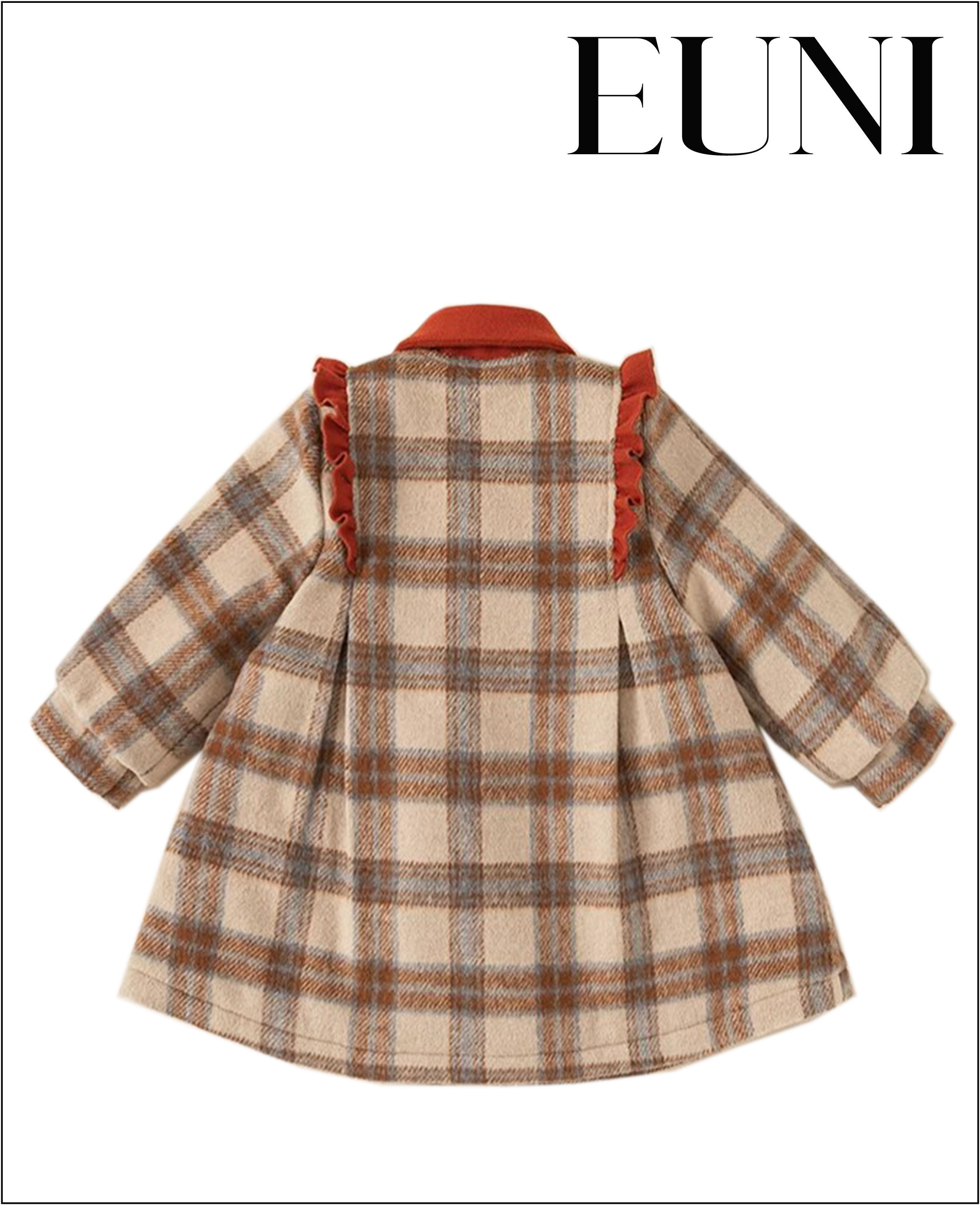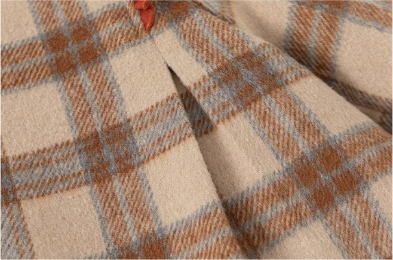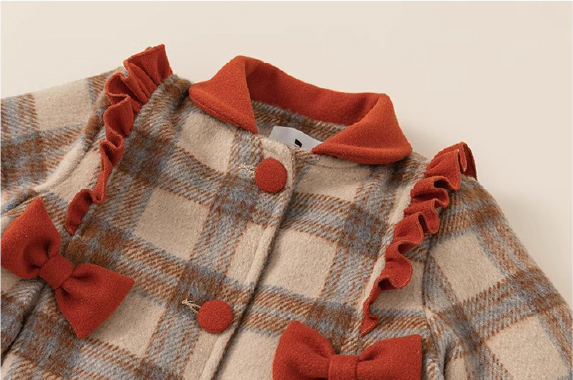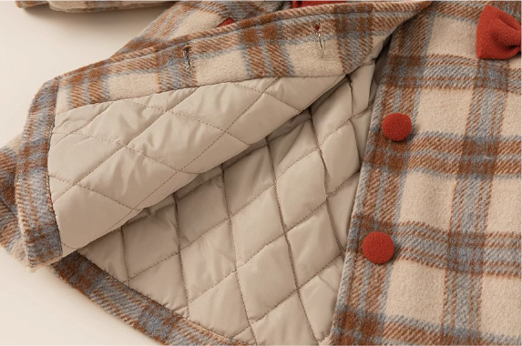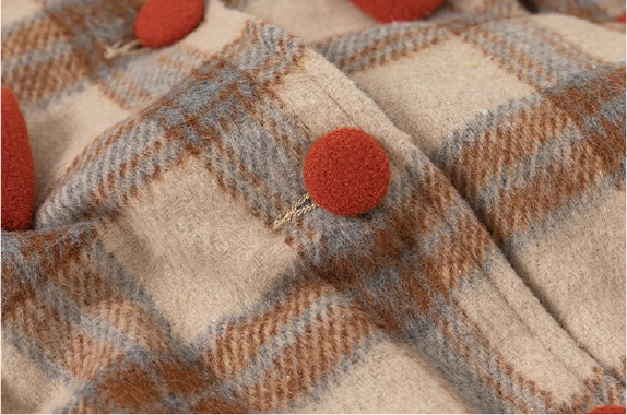 復古格紋風大衣設計;聚酯纖維材質;翻領、圓領設計;加厚保暖款式。