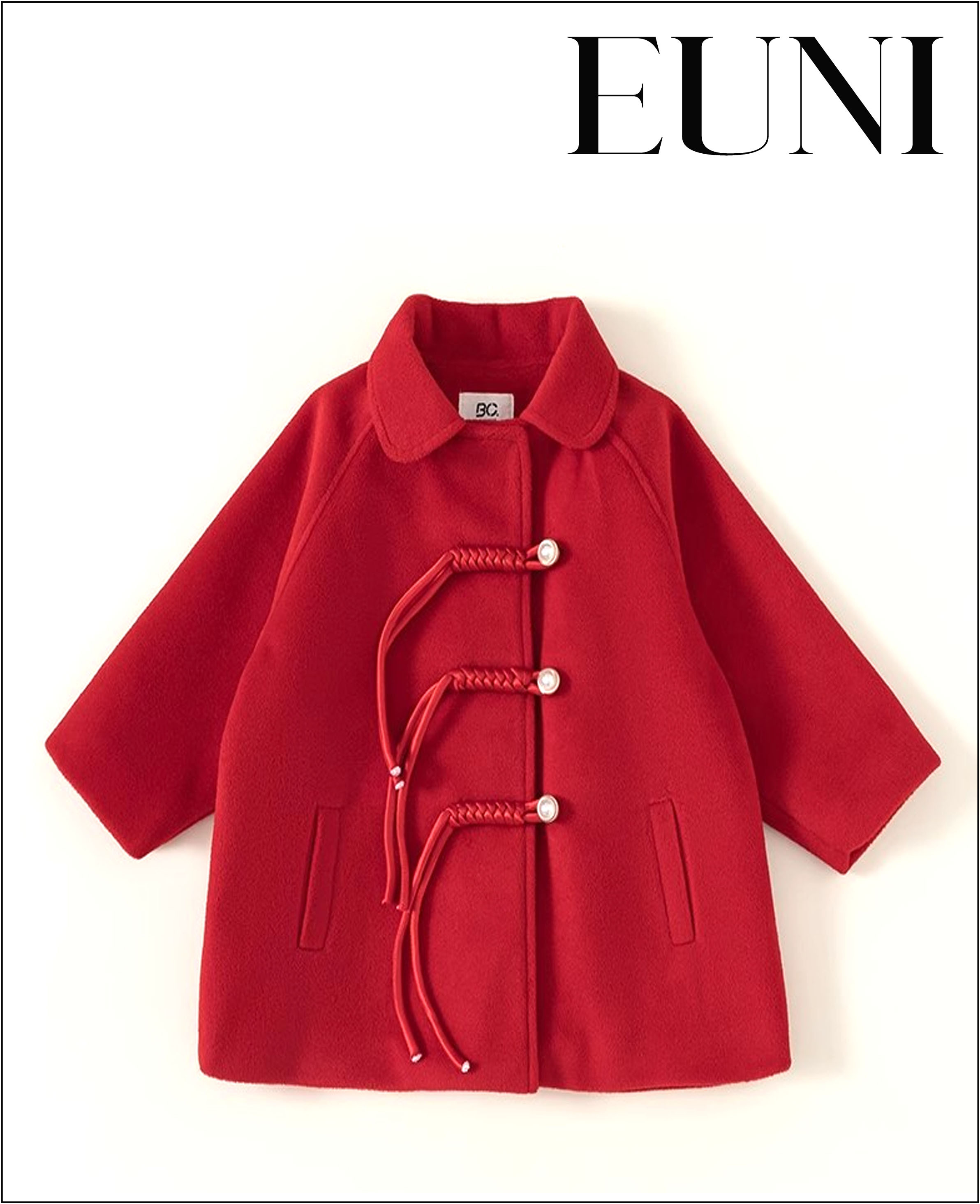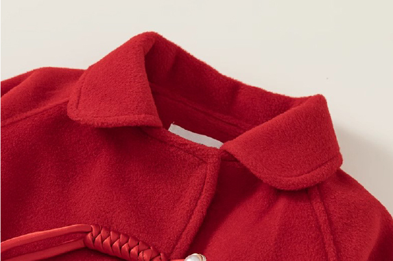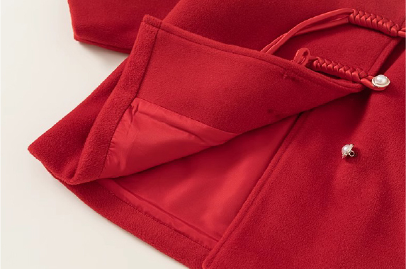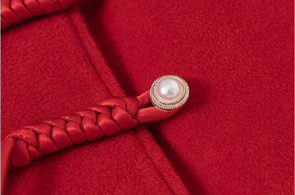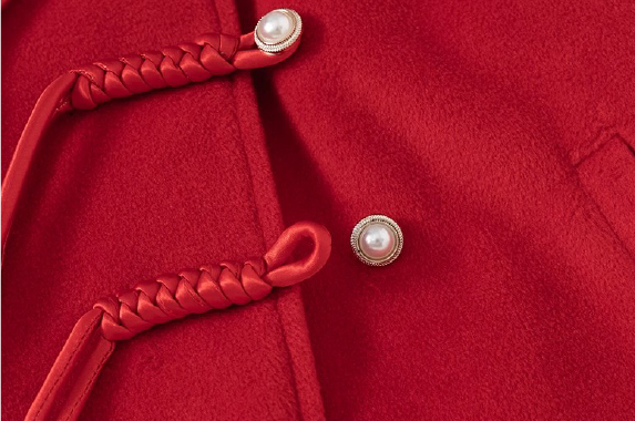 中國風大衣設計;聚酯纖維材質;盤釦、翻領款式。