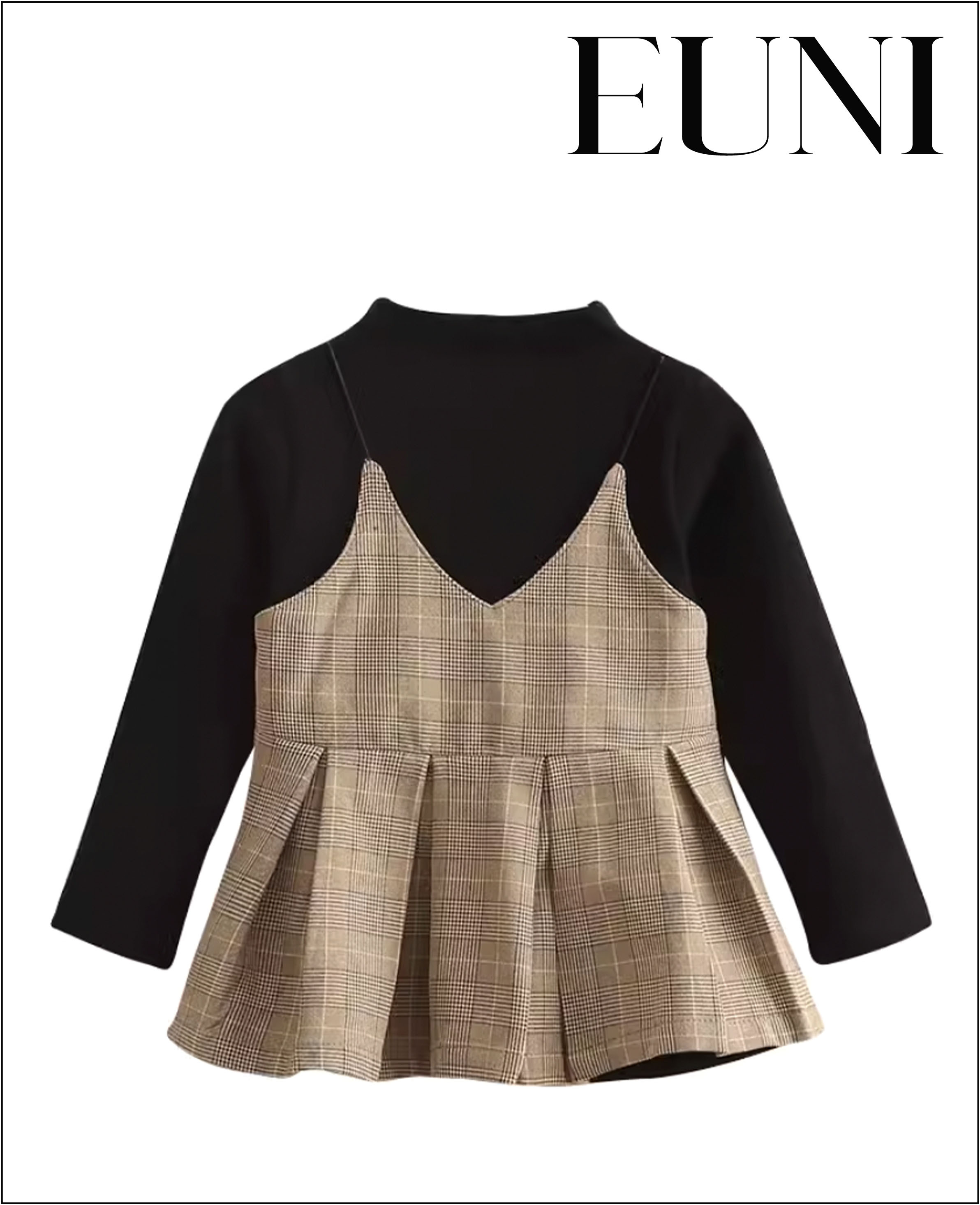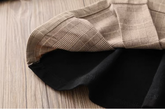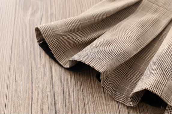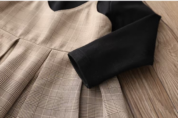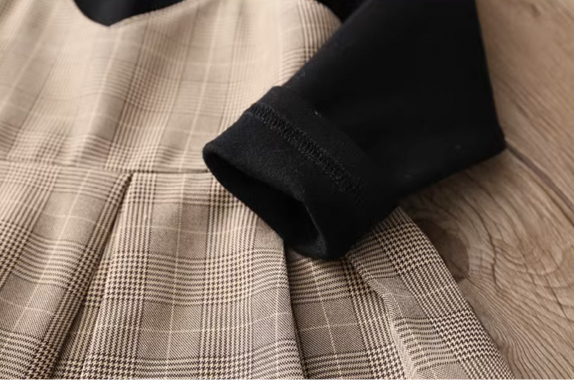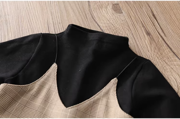 女童裙衫;蘇格蘭紋設計;聚酯纤维材質;兩件式層次設計;端莊典雅淑女風格。